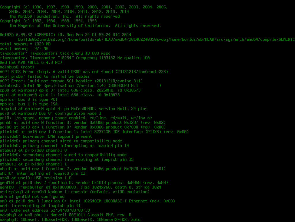 >       ACPI on, APIC on, 2 CPU, 1024 RAM.