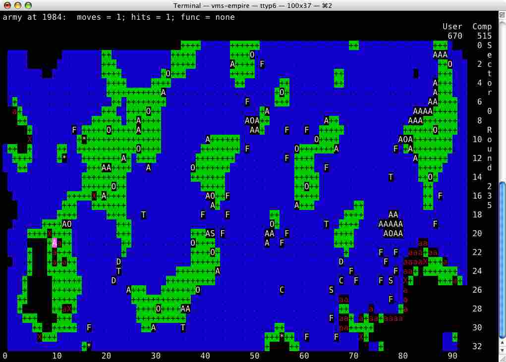 Seriously.Here's an example, that will, both suck in ncurses, and prove U DONT need ncurses, just for color. So build vms-empire via pkgsrc, then cd to the work directory, and then apply this attached ed-script, or just look at the attached picture.