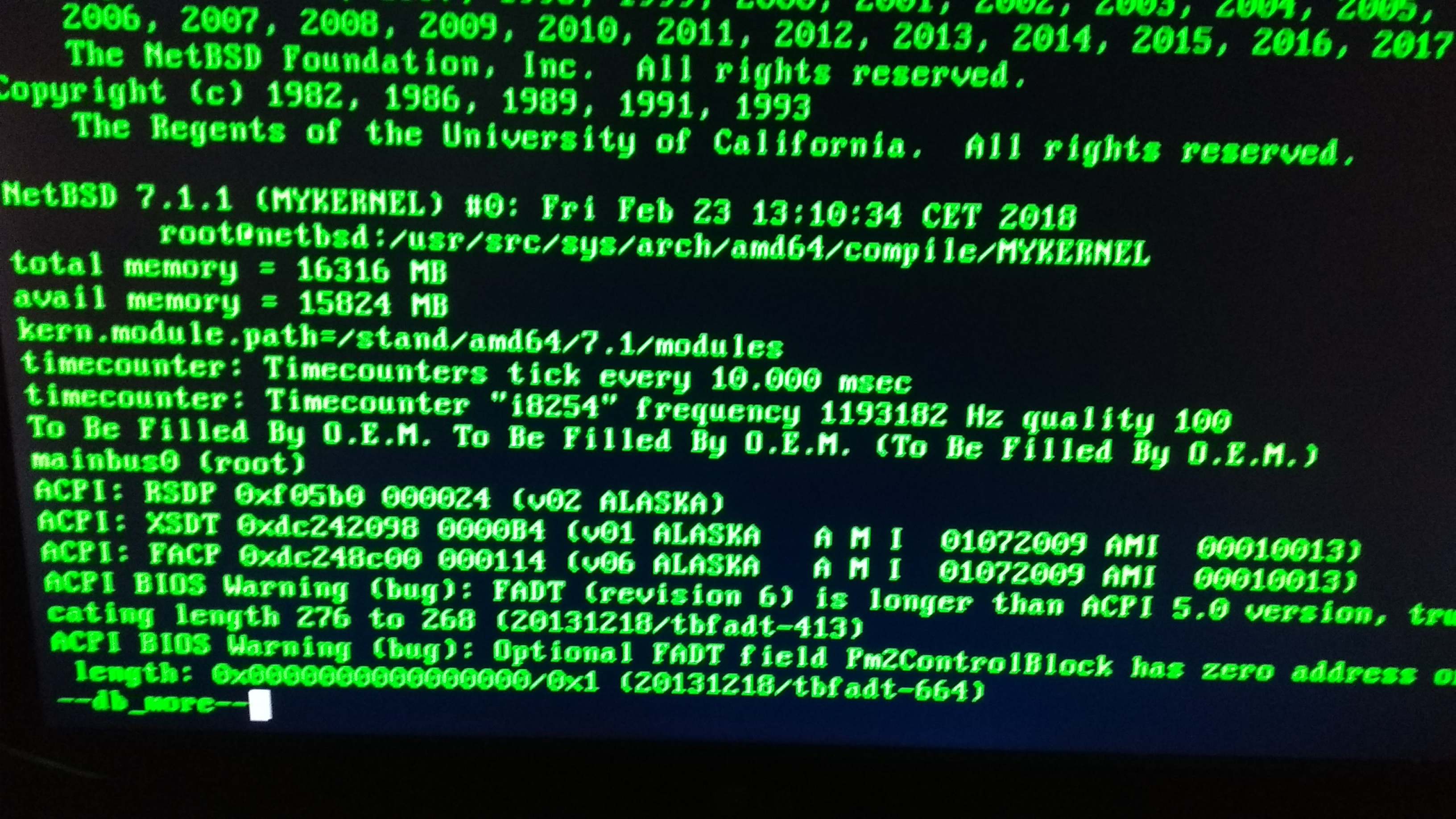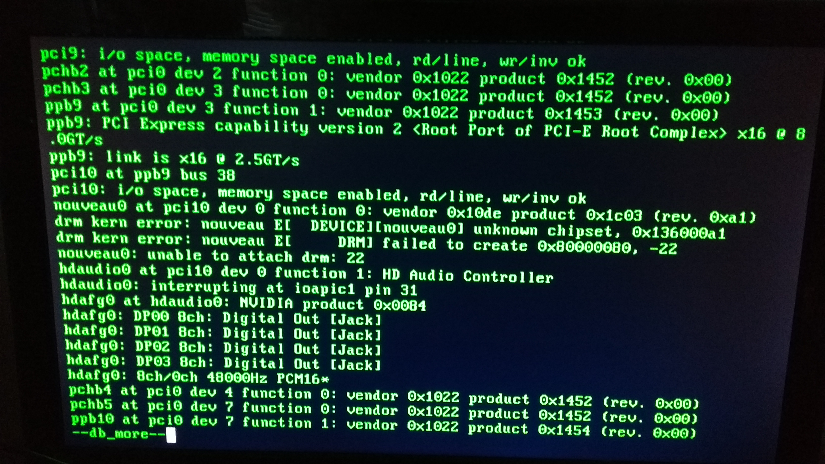 Hi,I just tried NetBSD 7.1.1 on my desktop machine. As I have a Nvidia graphics board i compiled a kernel with nouveau enabled. Unfortunatly the kernel crashes. I also tried a current NetBSD 8_BETA build. It looks like it has the same crash.