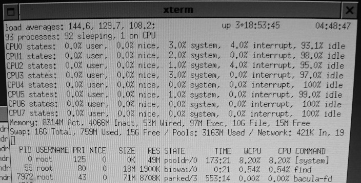 Kernel is in pooldr state and only find is running (from /etc/daily).